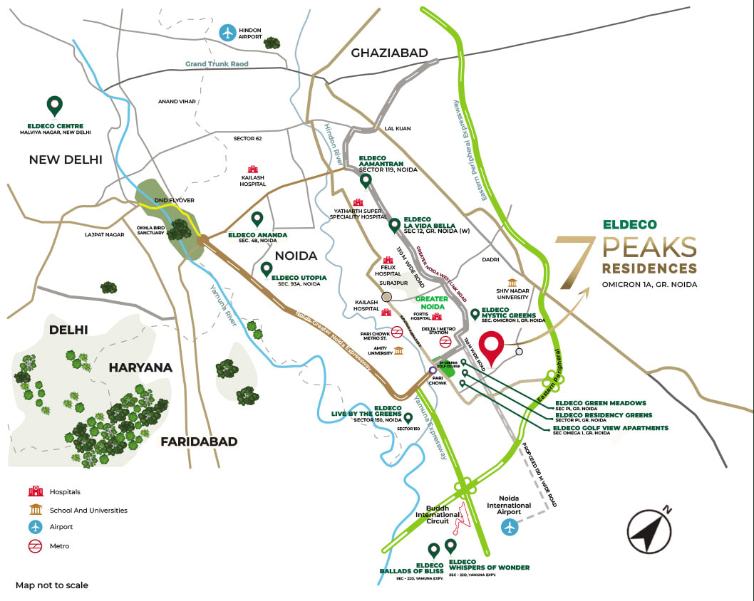 Strategically located in Sector Omicron 1A, Greater Noida, Eldeco 7 Peaks Residences offers seamless connectivity to major road networks, educational institutions, healthcare facilities, and commercial hubs. Its prime location makes it an ideal choice for homebuyers looking for luxury flats in Greater Noida with excellent connectivity and long-term investment value.